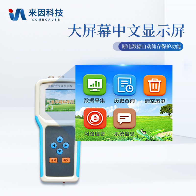 简要描述: 手持农业气象环境检测仪IN-QX4是我们专门针对农田、草场局部小尺度环境设计的,对与植被和农作物生长密切相关的土壤、水气等环境参数监测的农田小气候站。它主要观测与农业相关的空气温度、空气湿度、光照强度、二氧化碳浓度等4个环境参数气象要素,为农业科研、农业生产等提供良好的支持。