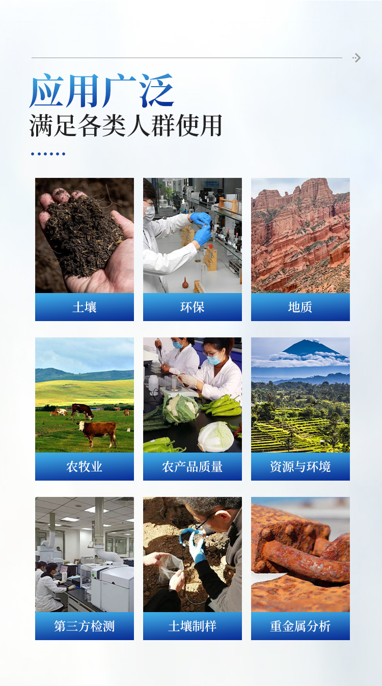 应用领域:土壤、地质、环保、第三方检测、农牧业、农产品质量、资源与环境等,土壤制样、重金属分析。